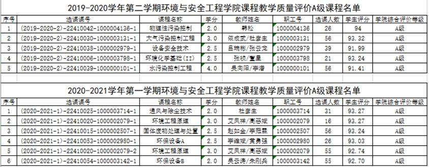 本科课程教学质量评价及奖励办法(试行)》的通知”(江大校〔2013〕356号),以课程教学班为评价单元,在本年度前两学期所有课程学生评教平均分位列学院排名前50%的课程中,对本学期课程评教结果在学院排名前30%的课程,结合领导干部、同行听课情况和座谈会、信息员反馈等相关质量监控信息进行综合评价,A级教师课程班比例不超过本学期学院课程教学班总数的20%,经学院院务会研究决定以下课程作为A级教师课程班上报教务处(一课多教符合条件者入选,不符合条件者未入选)。
