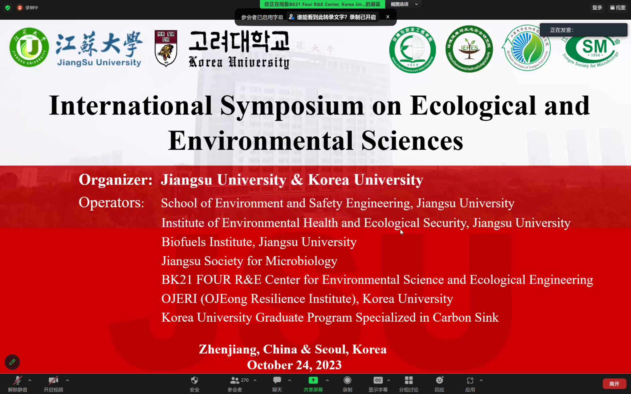 生物质能源研究院、江苏省微生物学会、BK21 FOUR Korea University R&E Center for Environmental Science and Ecological Engineering、OJEong Resilience Institute of Korea University、Korea University Graduate Program Specialized in Carbon Sink联合承办,av麻豆