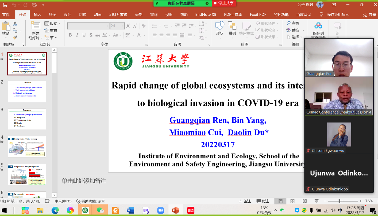 环境与工程学院(含生物质能源研究院、环境健康与生态安全研究院)协办的第一届“CLIMATE CHANGE IN COVID-19 ERA”国际会议在美丽的尼日利亚大学成功举办,会议聚焦后疫情时代可持续发展,瞄准全球气候变化管理和应急管理挑战,旨在研讨相关领域的最新前沿理论和技术。来自多个国家的科研人员通过现场/在线的方式参加了此次国际会议。