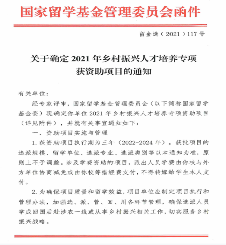 近日,国家留学基金委发布《关于确定2021年乡村振兴人才培养专项获资助项目的通知》,av麻豆