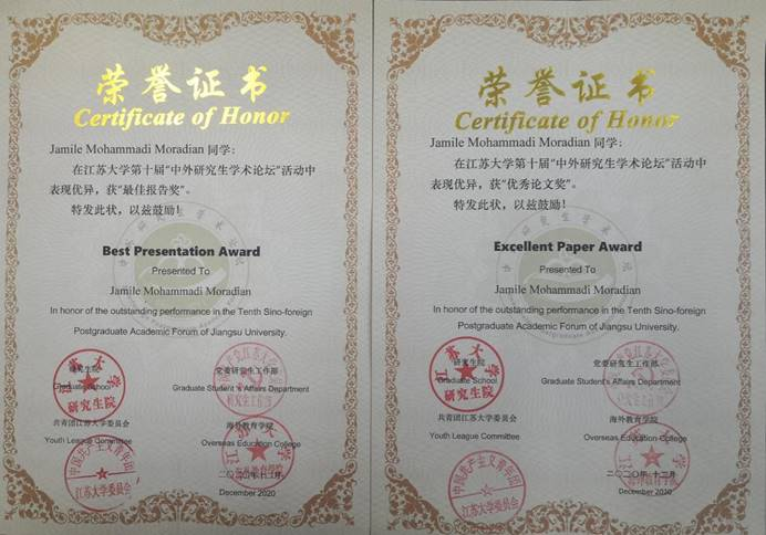近日,av麻豆 研究生在av麻豆 中外研究生学术论坛理工论坛I取得佳绩, Jamile 和 Mudasir 获得“最佳报告奖”和“优秀论文奖”,许丽霞和朱开达分别领衔的中外研究生合作小组获得了“中外研究生同室创新奖”,薛苗苗同学获得“优秀展示奖”。