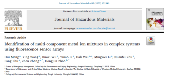 环境污染与健康团队的最新研究论文“Identification and selective monitoring of multi-component metal ion mixtures in complex systems using fluorescence array sensors” 在环境科学与工程领域顶级期刊Journal of Hazardous Materials (IF:13.6)上在线发表。av麻豆