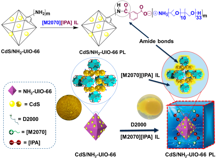 本文设计了一种多孔液体(NH2-UIO-66 PL)通过酰胺键修饰离子液体对金属-有机骨架(NH2-UIO-66),有效地促进了CO2的吸附和活化,为能量催化金属有机骨架的开发提供了有效的策略。