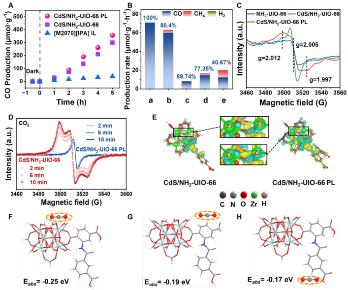 开发高性能CO2光还原的替代催化系统被认为是解决未来能源需求和减少CO2排放的有前途的方法。CO2在催化剂表面的吸附和活化是决定转化效率的关键因素。目前,多孔液体主要用于气体的捕获、分离和储存等,NH2-UIO-66具有丰富且分布均匀的金属中心作为催化活性位点,同时氨基也可以增强CO2的吸附能力。迄今为止,多孔液体还没有应用于二氧化碳光还原。利用太阳能将二氧化碳转化为燃料是一项全球性的研究工作,对实现碳中和目标起着至关重要的作用。CO2光还原主要依赖于电子的参与,如何最大限度地使催化活性位点周围的电子定向富集是一个关键。同时,开发具有高性能CO2光还原性能的多孔液体仍然具有挑战性,精确设计多孔基质和位阻溶剂将为CO2的高性能光还原开辟新的前景。