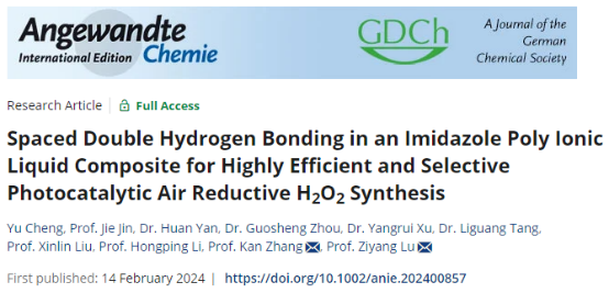 的最新研究论文“Spaced Double Hydrogen Bonding in an Imidazole Poly Ionic Liquid Composite for Highly Efficient and Selective Photocatalytic Air Reductive H2O2 Synthesis”在Angewandte Chemie-International Edition (IF:16.6)上在线发表。av麻豆