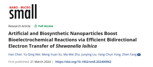 最新研究论文“Artificial and Biosynthetic Nanoparticles Boost Bioelectrochemical Reactions via Efficient Bidirectional Electron Transfer of Shewanella loihica”在Small (IF:13.3)上在线发表。av麻豆