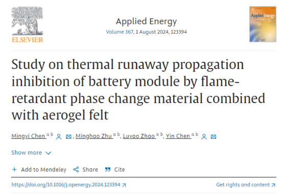 最新研究论文“Study on thermal runaway propagation inhibition of battery module by flame retardant phase change material combined with aerogel felt”在能源工程领域顶级期刊Applied Energy (IF:10.1)上发表。av麻豆