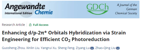 逯子扬教授等在《德国应用化学》(Angewandte Chemie-International Edition)上发表最新研究论文“Enhancing d/p-2π* Orbitals Hybridization via Strain Engineering for Efficient Photoreduction CO2”,并入选Inside Cover。av麻豆