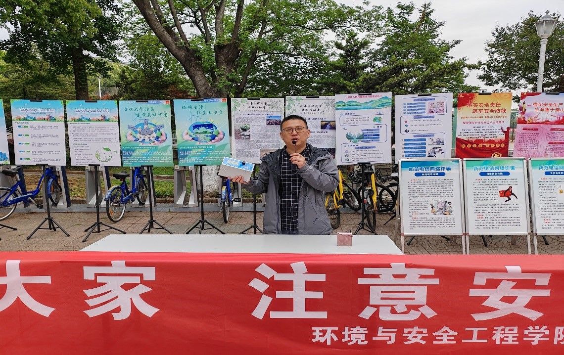 来自环境工程系教工党支部和安全工程系教工党支部的6位老师结合专业知识,分别对相关展板做了充分详实的讲解。杨蒙老师率先介绍了今年全国“防灾减灾日”的主题是“防范灾害风险 护航高质量发展”,讲解了防灾减灾日的由来、设立、防灾减灾的图标以及自救知识等。吕玲玲老师带领大家学习了《中华人民共和国大气污染防治法》主要内容,认识到保护蓝天、强化多污染协调减排控制是建立气候安全的第一道屏障。王稼倩老师讲解了《中华人民共和国土壤污染防治法》的内容和制定背景,强调土壤污染防治是一项保障民生和粮食安全的重大环境保护工程。赵媛媛老师普及了《中华人民共和国水污染防治法》相关知识,从防治原则、防治领域、处罚力度等方面剖析了保护饮用水安全的重要性。李滕滕老师强调企业应严格贯彻“安全第一、预防为主、综合治理”的安全生产工作方针,各团体、单位应及时开展应急演练检验应急预案的有效性。贾峰老师针对不同突发事件进行了分类讲解,强调应急管理不仅体现在突发事件发生时,更应该做到日常化。