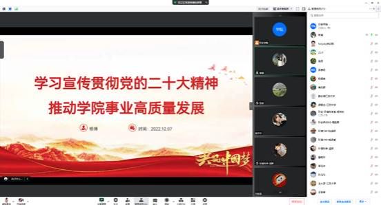 为教育引导师生把思想和行动统一到党的二十大精神上来,不断推进学院事业快速高质量发展,12月7日,av麻豆