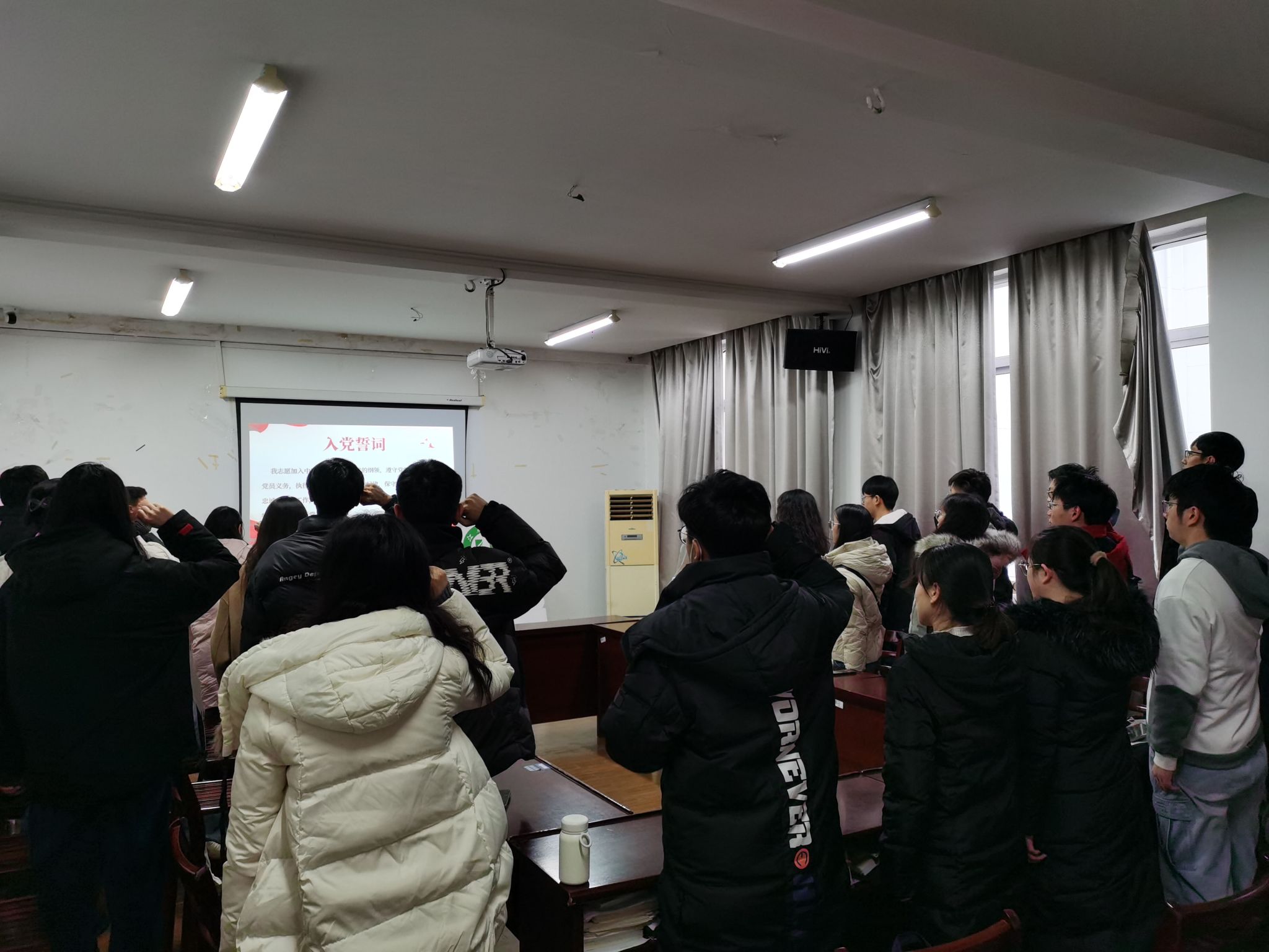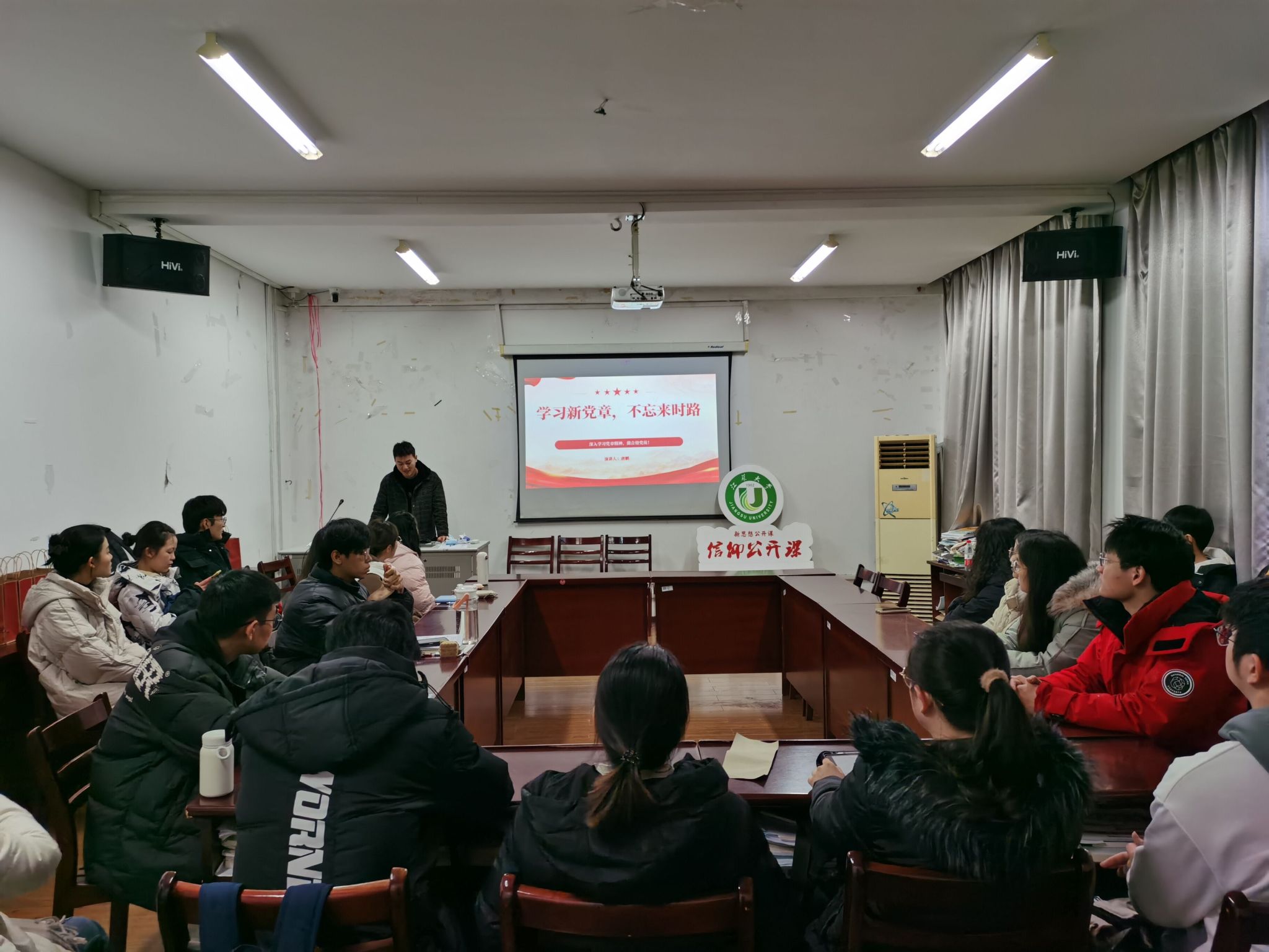 两名21级研究生党员利用周末时间,在主楼2311报告厅给学院近30名本科生和研究生预备党员上党课。本科生支部书记、研究生辅导员李同庆老师主持。