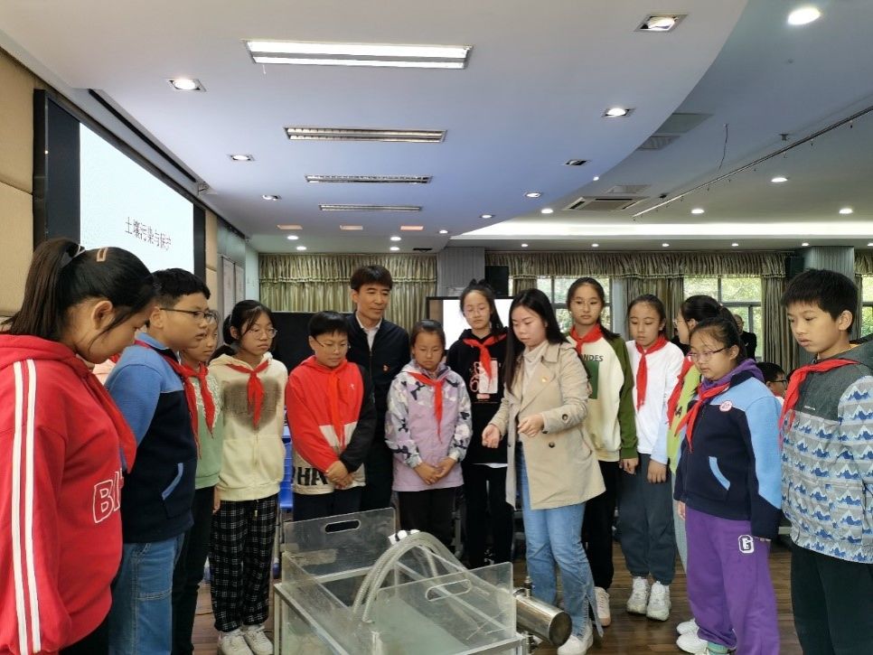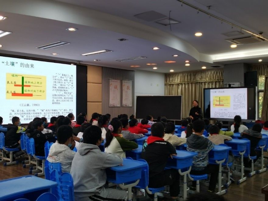 最后,贾慧老师结合小学实践基地的土壤和植物,为小学生讲授农业土壤环境保护相关知识,了解校园植物的性能、生长环境,并与碳达峰、碳中和相结合,让孩子们深刻体会了保护土壤环境、节能减排和绿色低碳的重要性。