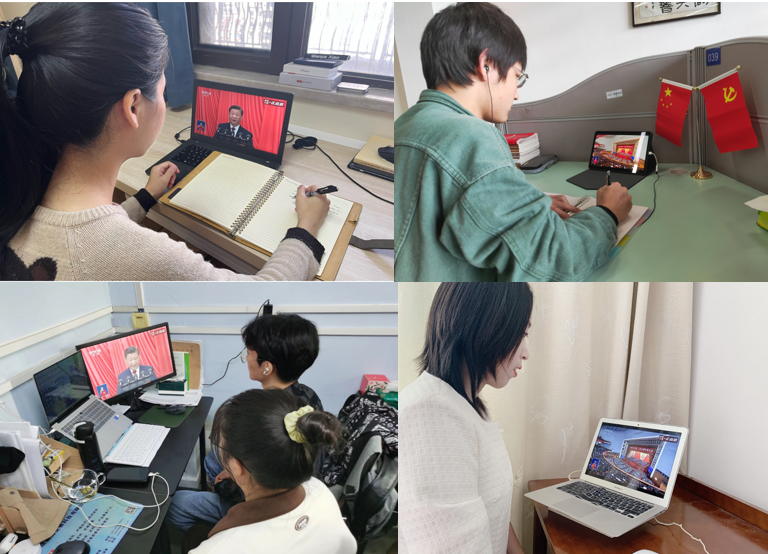 党委组织党委中心组成员、学院办公室和实验室的全体人员以及研究生和本科生代表在主A楼501集中收看党的二十大开幕会,认真聆听习近平同志代表中国共产党第十九届中央委员会向大会所作的报告。学院其他师生在办公室、工作室或在家在宿舍自行收看开幕会盛况。开幕会结束后,各支部推荐上报了支部党员的简短收看感言,学院党委汇总后迅疾上报给校党委宣传部。