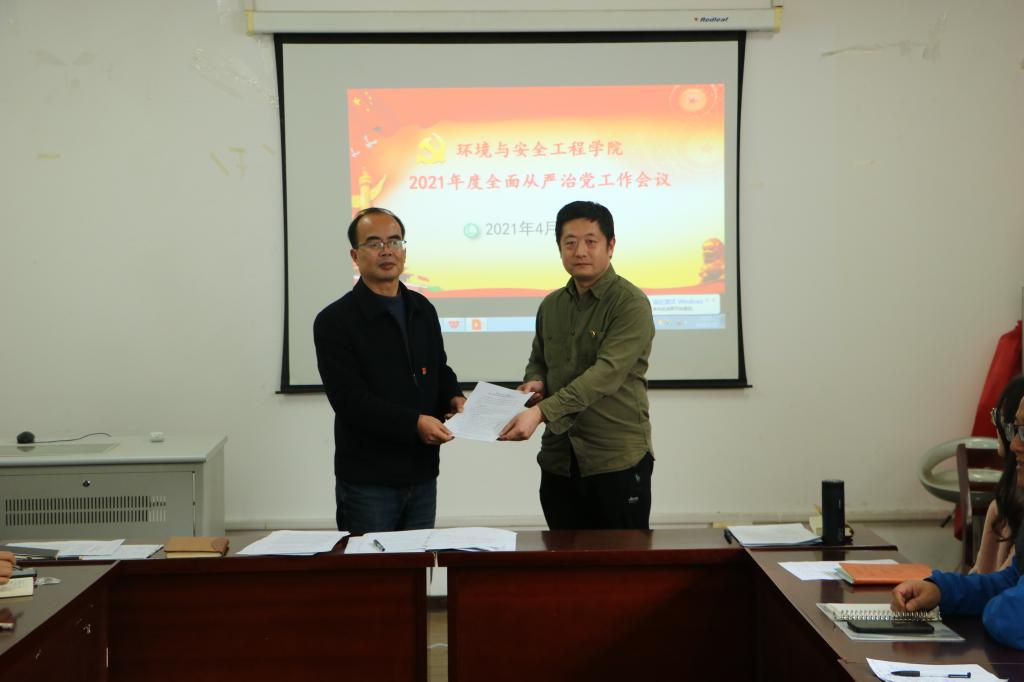 2021年度全面从严治党责任书》。黄勇强强调,学院领导班子成员和党支部书记必须坚决扛起全面从严治党政治责任,认真履责,推进学院全面从严治党工作向纵深发展,为学院事业发展营造风清气正的政治生态和良好的干事创业环境,重点做实做细做优党史学习教育、“095工程”、“三全育人”、安全生产等工作,确保学院“十四五”开好局,为学校事业高质量发展作出新贡献。