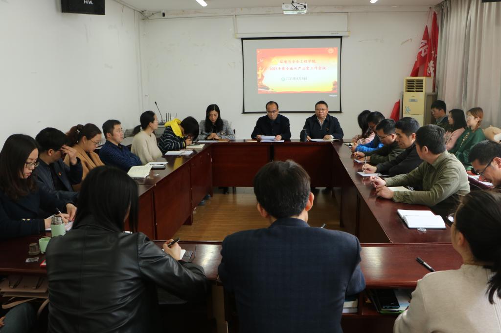 在学院2311报告厅召开2021年度全面从严治党工作会议。学院领导班子、党委委员、各党支部书记和纪检委员、系正副主任、中心实验室正副主任、科级干部参加会议。会议由党委书记黄勇强同志主持。