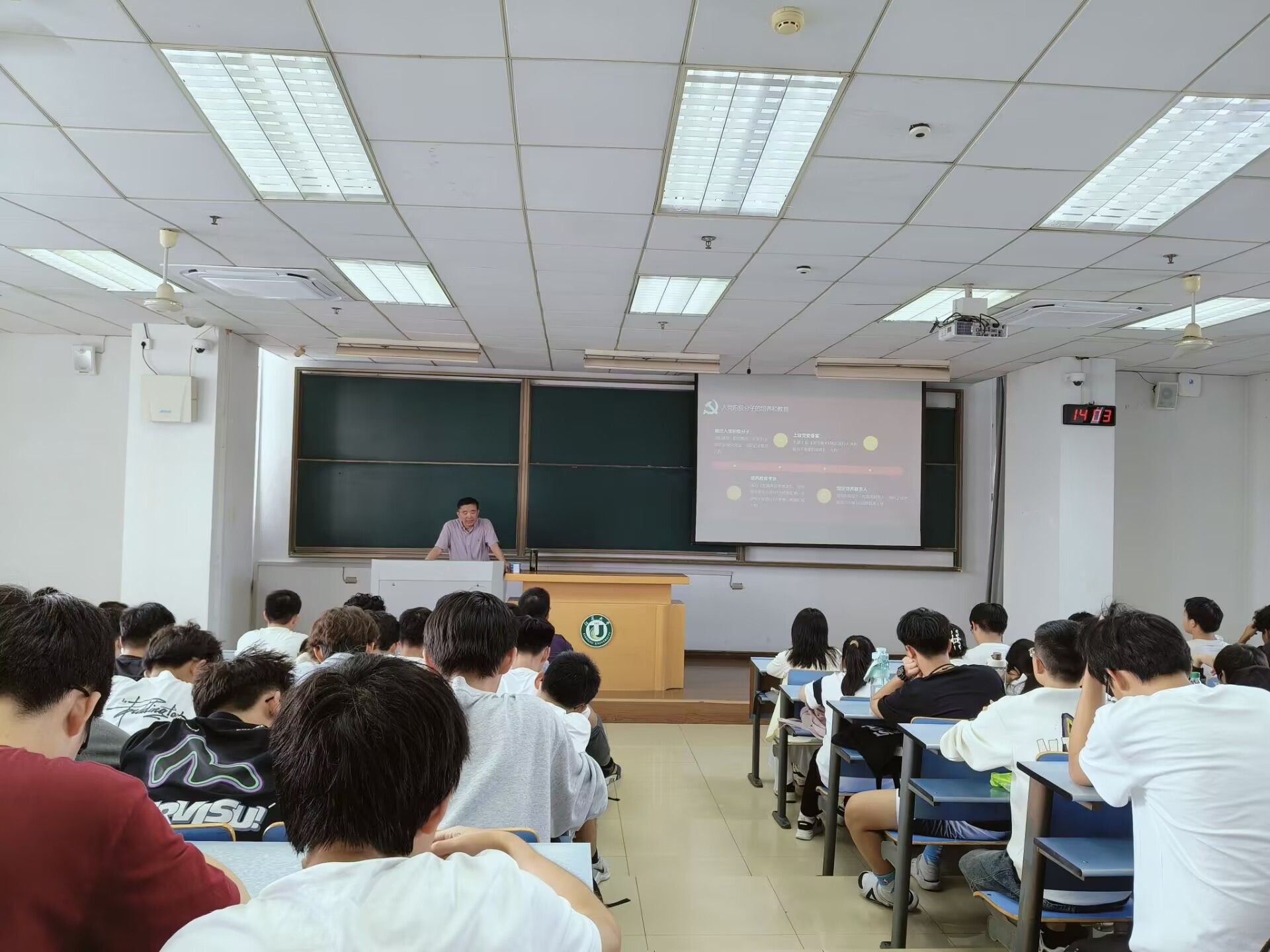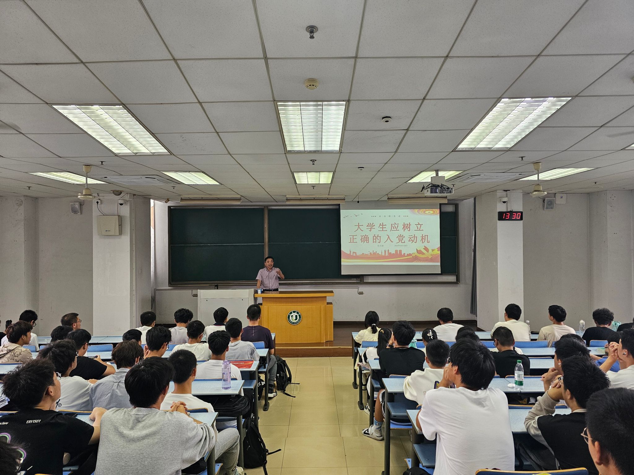 张九如老师以《大学生应该树立端正的入党动机》为题,围绕“中国共产党是怎么样的党”“为什么要加入中国共产党”以及“怎样入党”三个方面展开讲解。深入讲解了共产党员的初心与使命,详细解读了发展党员的基本条件、基本流程和常见问题。重点阐述了当代青年大学生的使命和责任,强调当代青年大学生要端正入党动机,传承红色基因,坚定理想信念,以实际行动向党组织靠拢,为党的事业贡献青春力量。